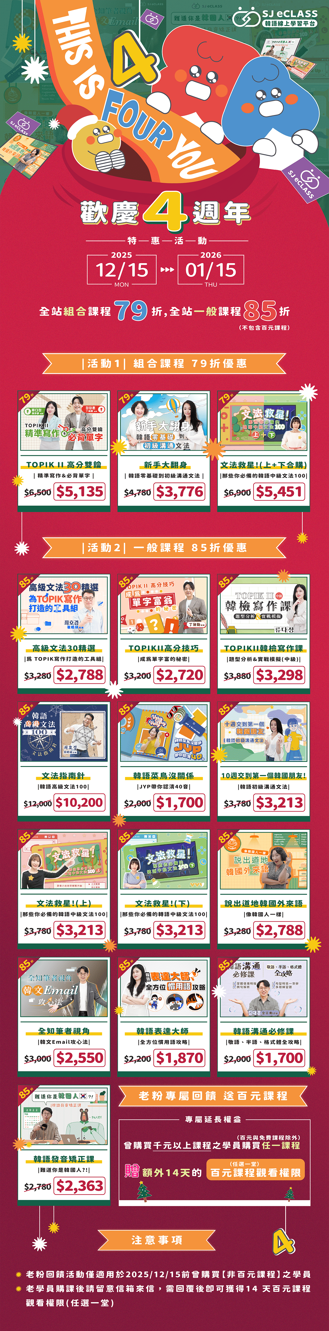 與【10週交到第一個韓國朋友!韓語初級溝通文法】組合包課程
